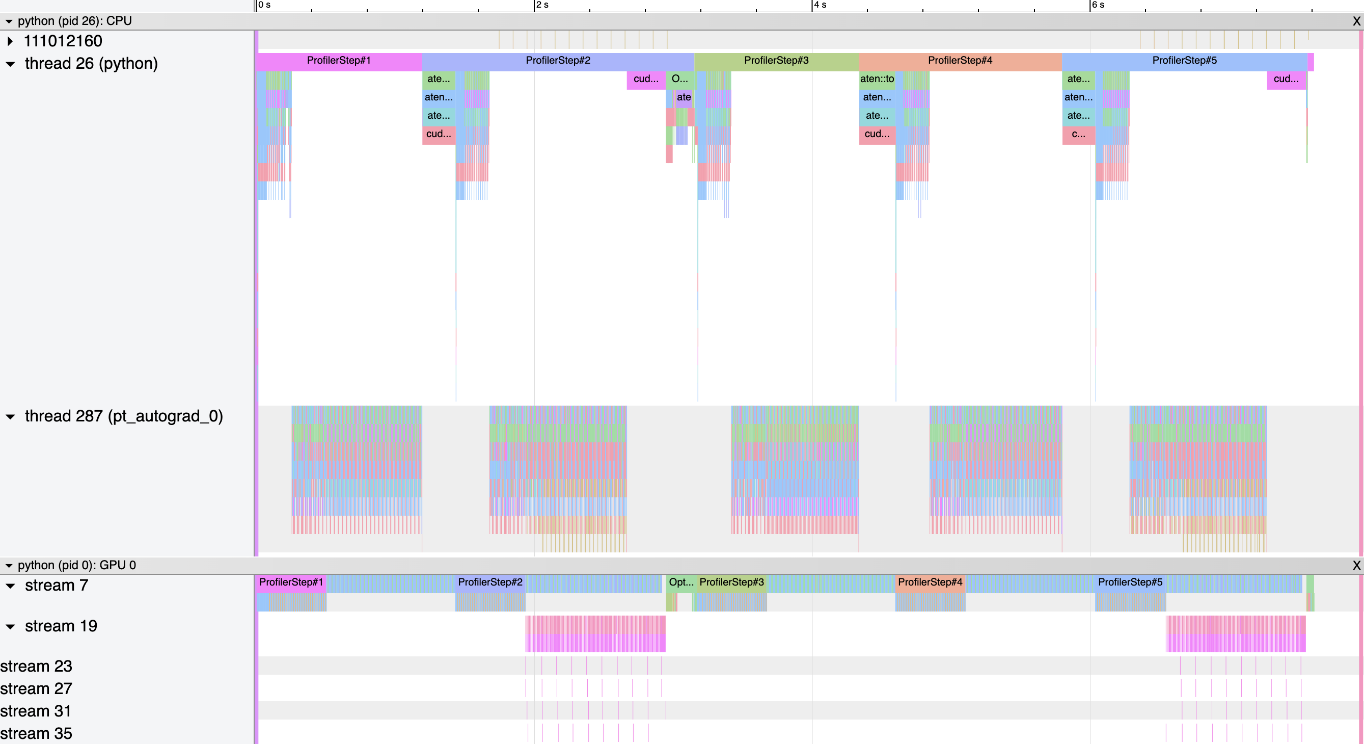 Along the way we will use the PyTorch profiler to visualize the execution and compare the traces to see the differences in execution during the different training runs.